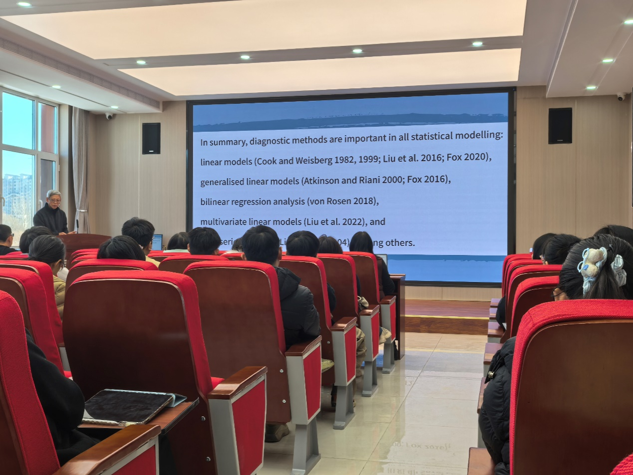 (通讯员:王芷月)2025年12月29日下午12:30,澳大利亚堪培拉大学刘双喆教授莅临长春工业大学数学与统计学院,针对时间序列问题的相关模型,开展了一场专业且富有启发性的学术报告。本次报告由数学与统计学院承办,在北湖东校区数统新楼201室进行,会议由数学与统计学院副院长杨凯教授主持,学院院长王纯杰、逄雨欣老师、李昂老师等及研究生参加了本次学术报告会。