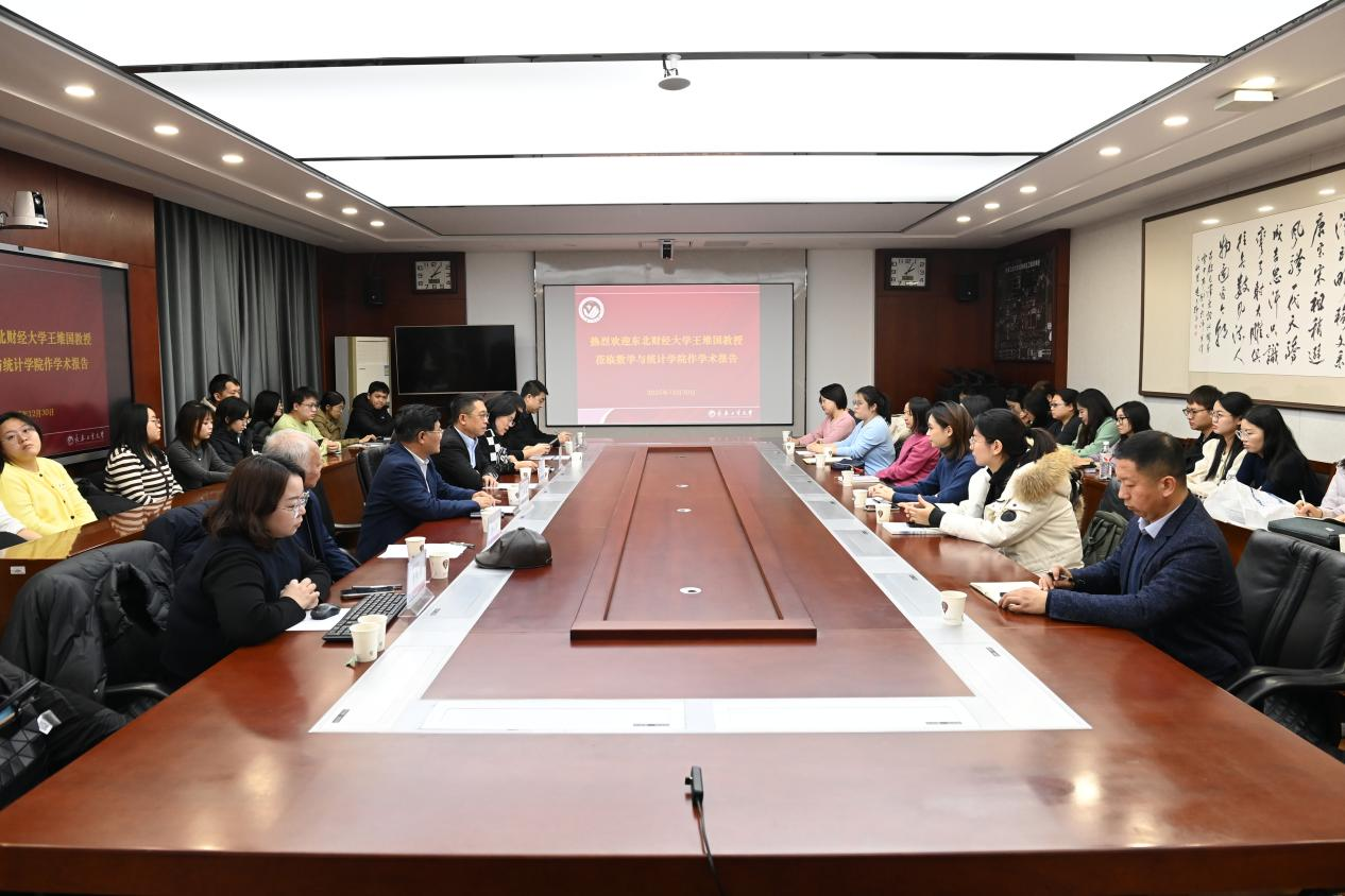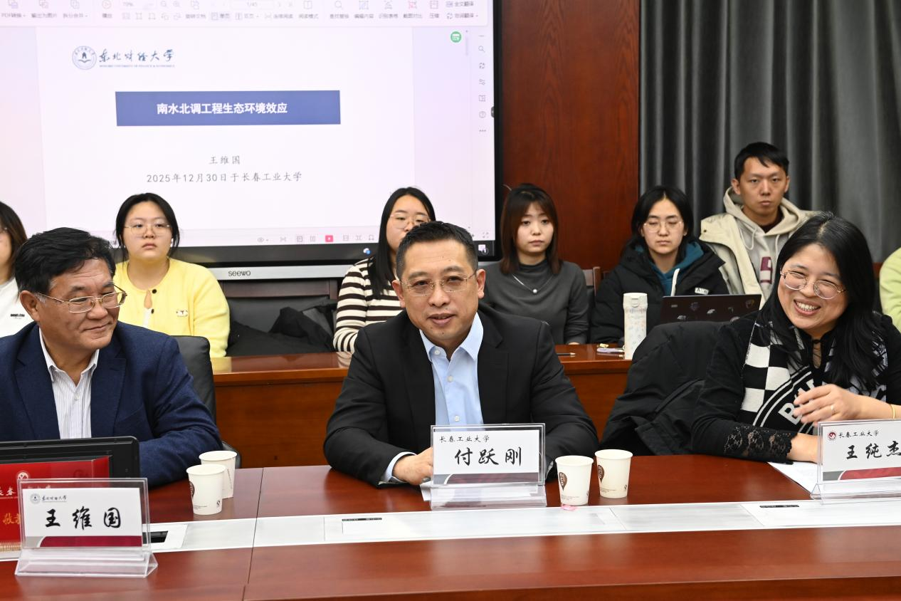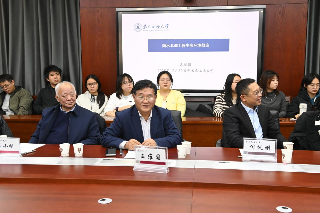 (通讯员:李相楠)2025年12月30日下午15:00,东北财经大学王维国教授莅临长春工业大学数学与统计学院,针对南水北调工程生态环境效应作学术报告。本次报告由数学与统计学院承办,在南湖校区办公楼五楼会议1561室进行,会议由数学与统计学院院长王纯杰教授主持,长春工业大学校长付跃刚、校教学指导委员会副主任董小刚、校学科建设办公室副主任兼大数据研究院院长秦喜文、学院副院长杨凯、学院副院长李纯净等老师及研究生参加了本次学术报告会。