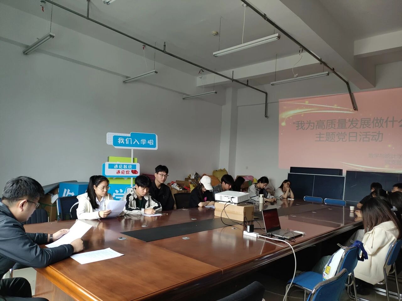 数学与统计学院团委讯(通讯员:赵子茉)为深入学习贯彻党的二十届三中全会精神,认真落实学校2025年党政工作要点,引导党员立足时代使命,强化责任担当,激发党员先锋意识,以实际行动践行新发展理念。5月12日,数学与统计学院学生党支部在东区主楼党政会议室开展“我为高质量发展作什么”——“党建领航聚力,共筑发展新程”主题党日活动。会议由学生党支部书记白海洋老师主持,全体学生党员参加。