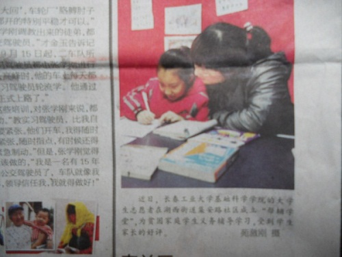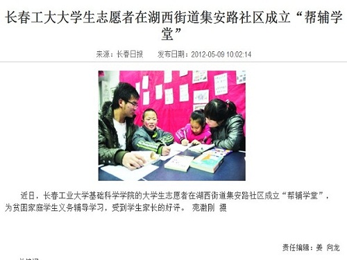 “两结合”模式开展学生思想政治教育是指依托学院红旗理论小组开展政治理论学习与实践相结合,政治理论学习与专业学习相结合的模式。学院以理论学习骨干为成员成立了阳光志愿者学校,面对社区农民工子女、特困家庭子女提供外语、数学、物理等义务家政辅导,从而实现政治理论学习与社会实践的有机结合。中国文明网、长春日报、新文化报等媒体以工大学子开展爱心帮辅学堂活动为题进行了广泛报道。结合学院学生数学知识学习比较多的实际特点,积极引导学生应用数学理论解释、理解在思想政治理论学习中遇到的实际困惑,增强学习理论的主动性和实效性,从而实现政治理论学习与专业学习相结合。