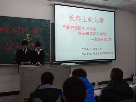 基础科学学院团委讯(通讯员 张倩倩)12月8日,由我校保卫处主办、校学生信息管理委员会承办的第二届“维护校园和谐稳定,营造和谐育人环境”主题演讲比赛决赛在北湖校区主楼1201室开展,校保卫处、各学院相关领导及我院北湖校区新生辅导员助理徐亮老师出席,各院学生代表参加。
